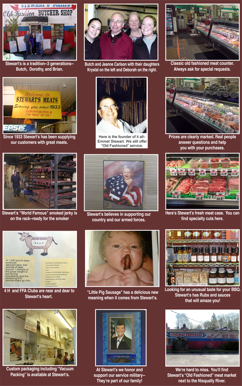 Emmett Stewart began his family owned business during the 1929 Depression. He maintained a tradition of quality meats at good prices, plus a commitment to customer service. It was not unusual to see Emmett driving down the country roads making deliveries in his old model T pick-up.